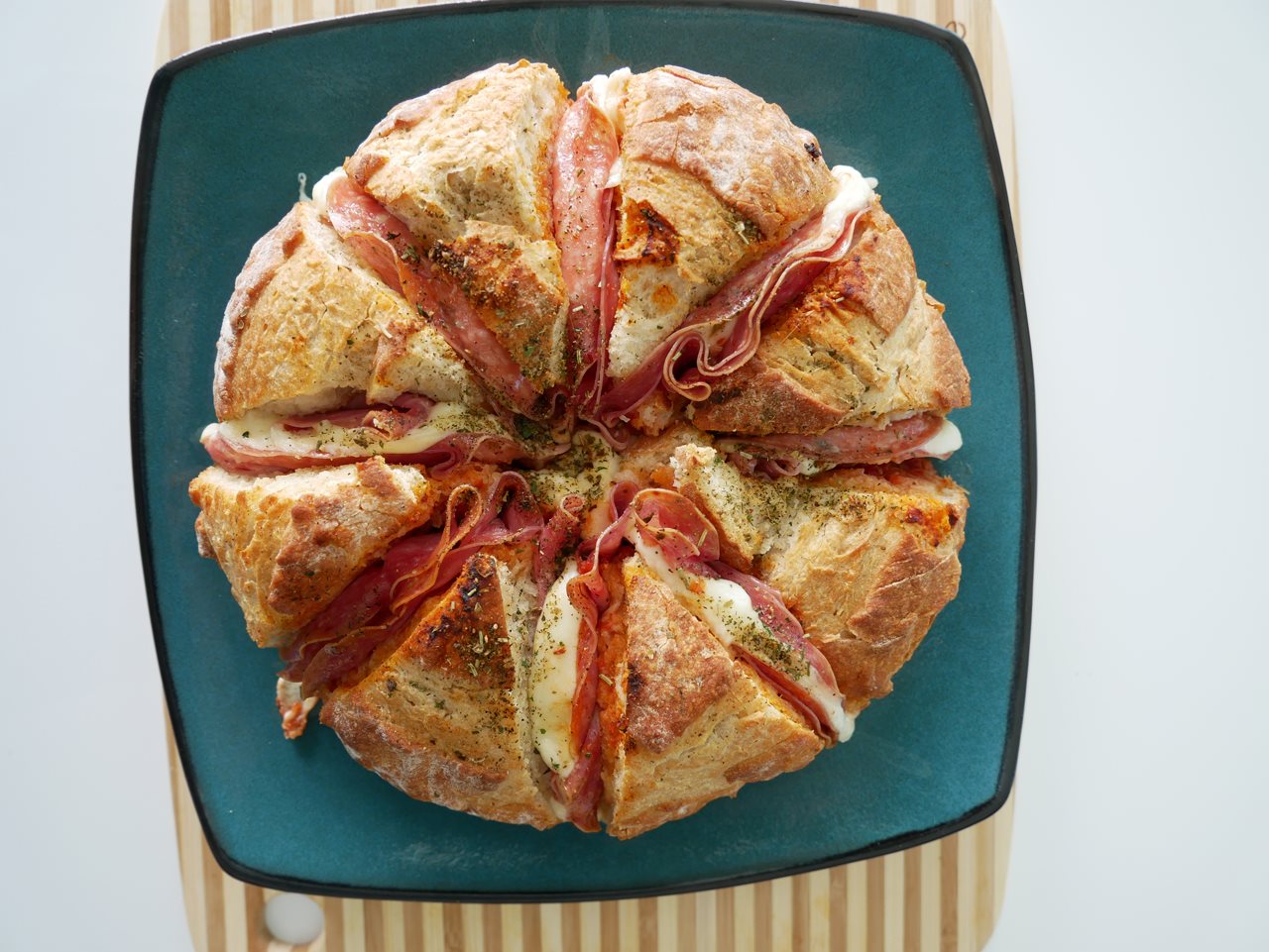 This savory pull-apart bread with a kick is sure to impress friends and family at brunch, lunch or dinner. All you need is a jar of Spicy Giardiniera Pasta Sauce, a round loaf of bread (preferably ciabatta, sourdough or French bread), sliced mozzarella and thinly sliced prosciutto or salami.
