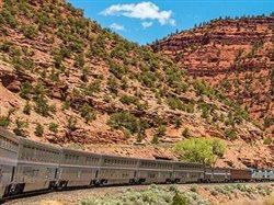 Longer train trips, such as the California Zephyr from Chicago to San Francisco, utilize double-decker glass-domed observation cars. This two-night, three-day experience passes through canyons, farmland, and deserts, not to mention the Rocky and the Sierra Nevada ranges. At 2,438 miles, it is Amtrak's longest daily route, following the same path as the 1869 transcontinental railroad.